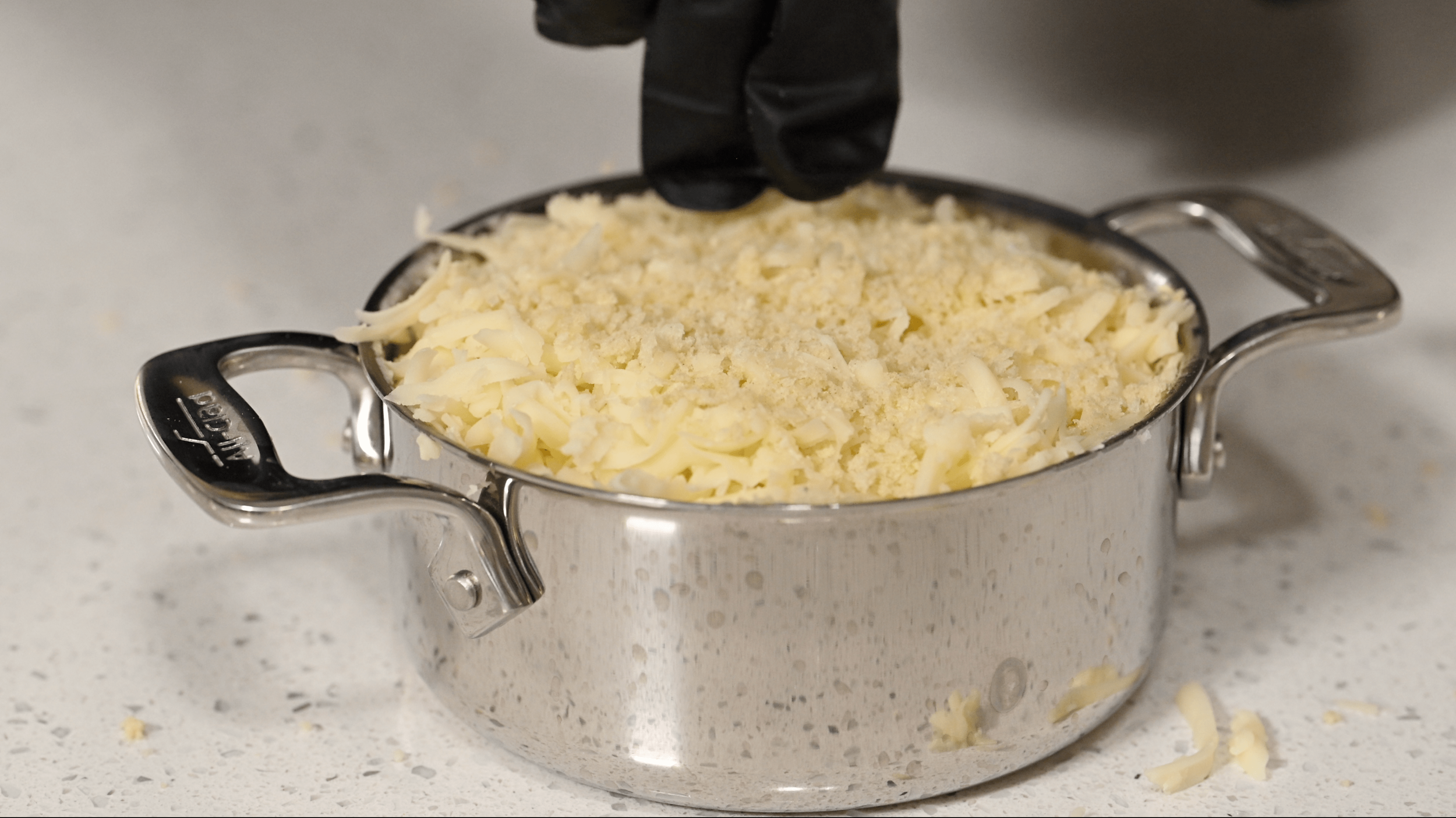 Grate as much as you plan to use. If you’re a cheese fiend, you’ll know what to do (grate a ton).