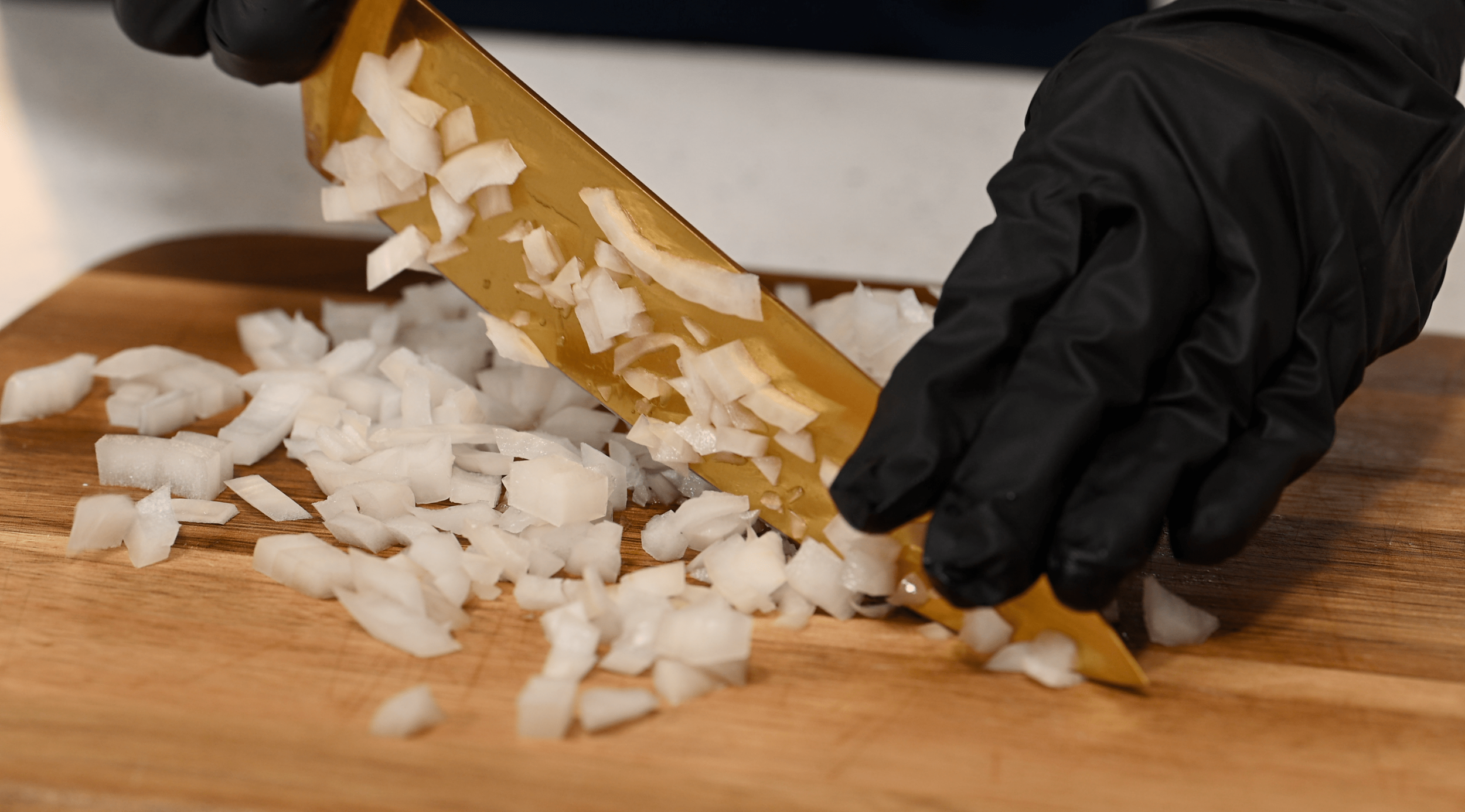 Heat oil in a pan at medium-high heat, and sauté your diced onion until soft.